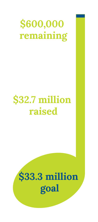 Rising construction costs pushed the total project to $33.5 million. With $32.9 million raised, we’re in the final stretch to retire the remaining $631,000 and secure a permanent home for music education in the heart of Madison.