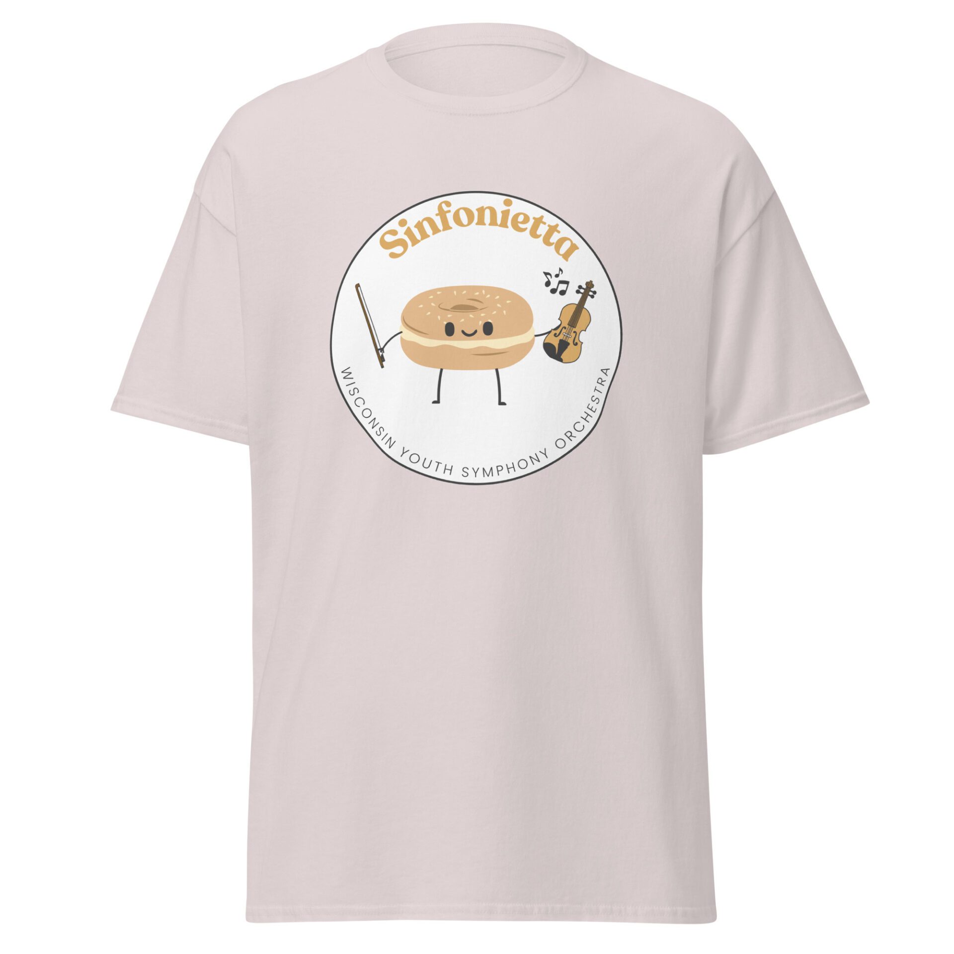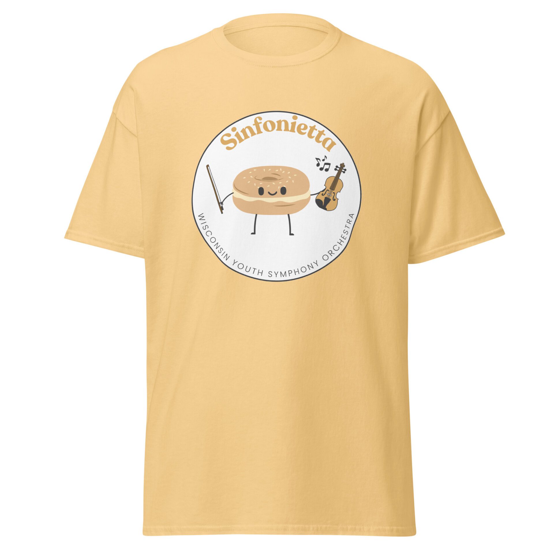 Each Saturday, WYSO students flock to the bagel booth during break. Because of this beloved tradition, the Sinfonietta t-shirt features a bagel playing a violin!